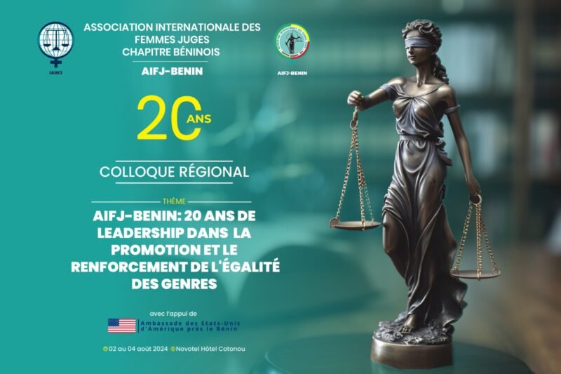 Justice, Bénin – Du 2 au 4 août 2024, Cotonou accueillera, avec le soutien de l’Ambassade des Etats Unis au Bénin, le colloque régional organisé par le chapitre béninois de l’Association Internationale des Femmes Juges (AIFJ-Bénin), célébrant ses 20 ans d’existence. Sous le thème « AIFJ-Bénin : 20 ans de leadership dans la promotion et le renforcement de l’égalité des genres », ce colloque rassemblera des femmes magistrats et divers professionnels de la justice de toute l’Afrique.