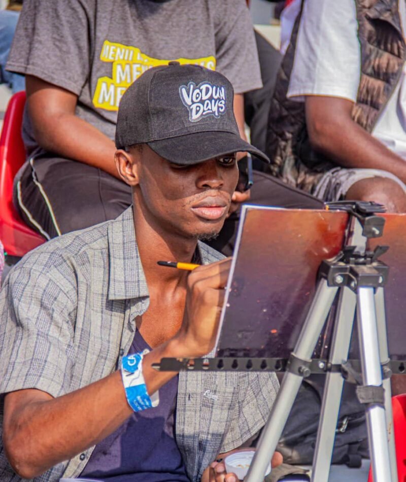 Art, Bénin – Pendant la cérémonie d’inauguration de l’arène de Ouidah, le samedi 11 janvier 2025, un moment inoubliable a captivé l’attention : un artiste peintre réalisait en direct le tout premier tableau de l’arène. Cette performance, née d’une émotion spontanée, symbolisait un retour aux racines culturelles. Mais qui est cet homme ? Pourquoi a-t-il choisi ce moment si particulier pour peindre ? La Marina BJ est allé à sa rencontre pour retracer son parcours et comprendre ce qui l’a conduit à ce moment unique.