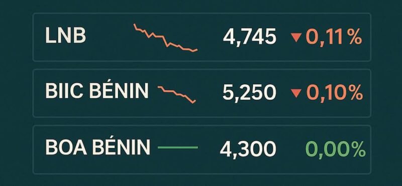 Bourse Bénin – Lors de la séance du jeudi 17 juillet 2025, marquée par une correction généralisée à la BRVM, les valeurs béninoises ont adopté un positionnement prudent, évoluant à contre-courant des variations les plus marquées du jour. Sans mouvement brusque, LNB, BIIC Bénin et BOA Bénin confirment leur profil de titres défensifs.