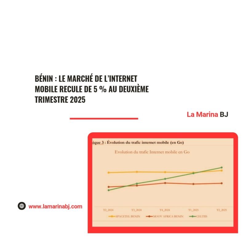 Internet, La Marina BJ – Entre contraction du nombre d’abonnés et explosion du trafic, le secteur des télécoms béninois amorce une nouvelle phase de mutation. Selon les données brutes publiées par l’Observatoire de l’Internet de l’Autorité de Régulation des Communications Électroniques et de la Poste (ARCEP) du Bénin, le nombre total d’abonnements Internet mobile actifs est passé de 11,14 millions au premier trimestre 2025 à 10,57 millions au deuxième trimestre, soit une baisse de 5,1 %. Cette contraction met fin à une dynamique de croissance continue observée depuis 2023.