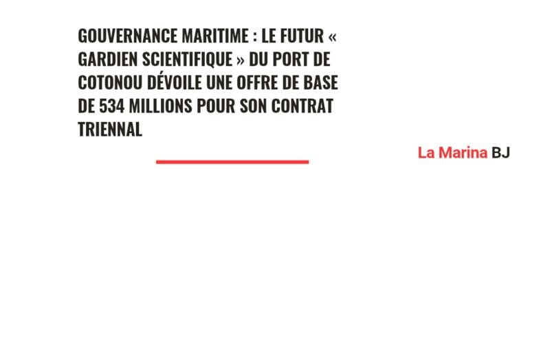 À SUIVRE BUSINESS Gouvernance maritime : Le futur « gardien scientifique » du Port de Cotonou dévoile une offre de base de 534 millions pour son contrat triennal