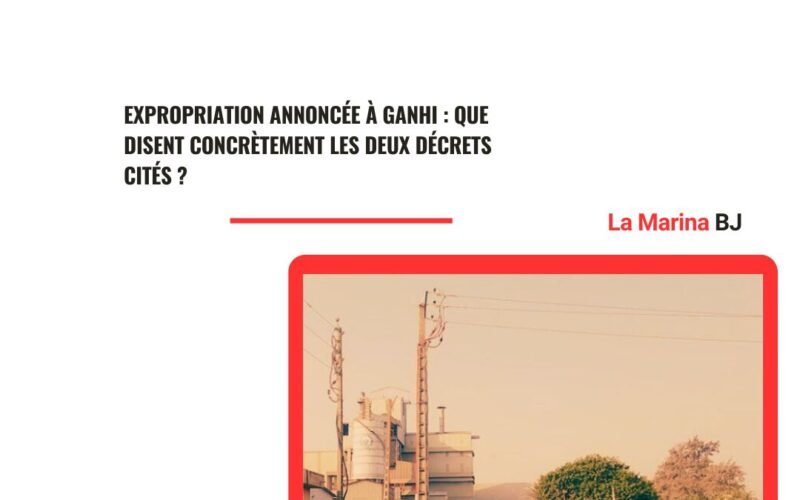 BUSINESS EN SAVOIR PLUS L'ÉVÉNEMENT Expropriation annoncée à Ganhi : Que disent concrètement les deux décrets cités ?