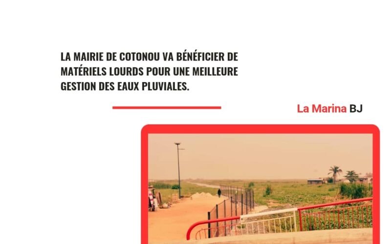 EN SAVOIR PLUS La mairie de Cotonou va bénéficier de matériels lourds pour une meilleure gestion des eaux pluviales