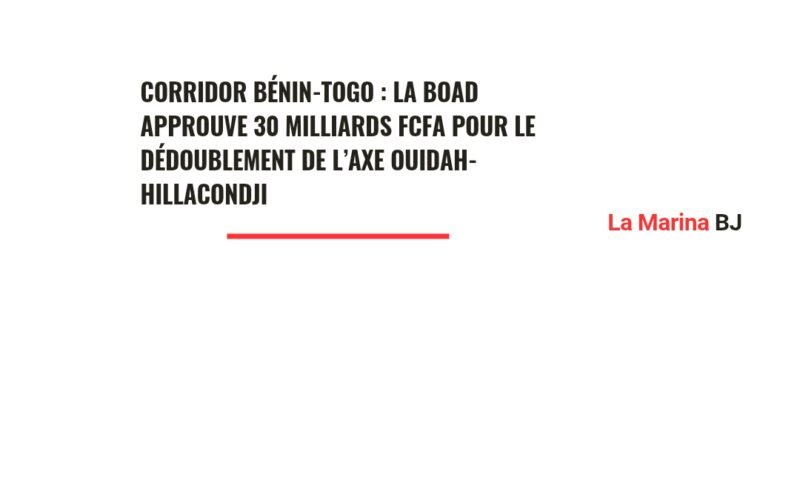 À SUIVRE INTERNATIONAL Corridor Bénin-Togo : La BOAD approuve 30 milliards FCFA pour le dédoublement de l’axe Ouidah-Hillacondji